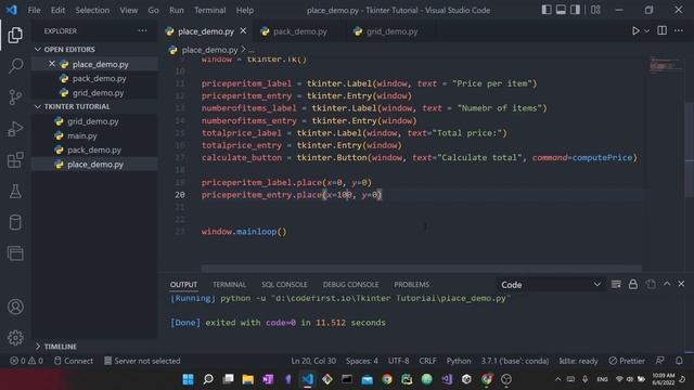 Tkinter tutorial for beginners #3: Layout Managers - position with pack(), place(), grid()
