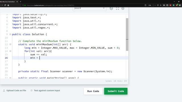 Hackerrank Mini-Max Sum O(n) Solution.
