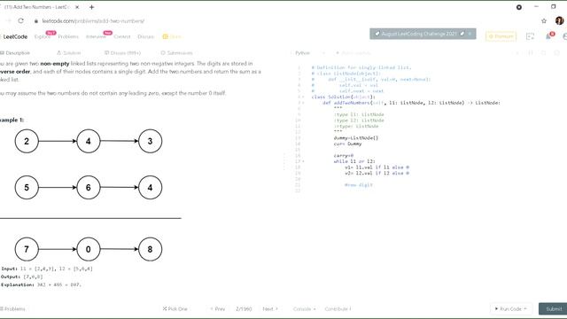 Leetcode 2 Add Two numbers in Python