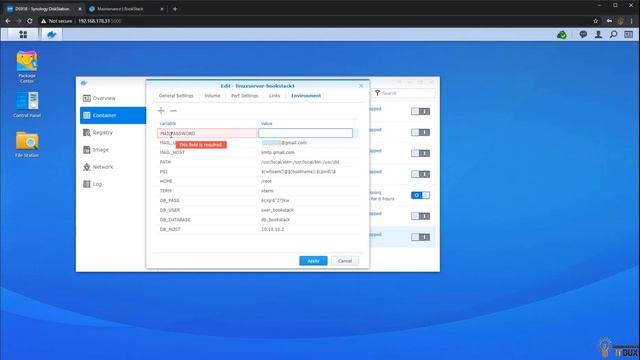 How to add Email settings to Bookstack on Docker Synology