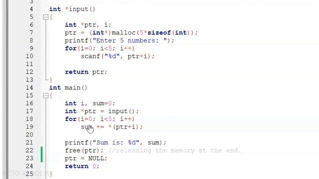 Releasing the Dynamically Allocated Memory using free()