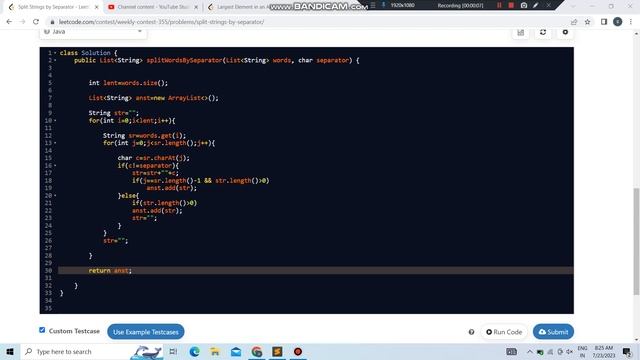 6921. Split Strings by Separator | Leetcode Weekly Contest 355 | Solution Code In Comment.