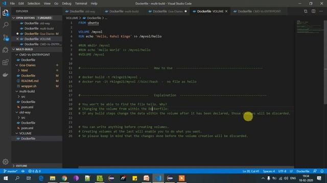Volume in Dockerfile | Docker Commands | Data Persistency| Sharing of directories | Rahul Kinge