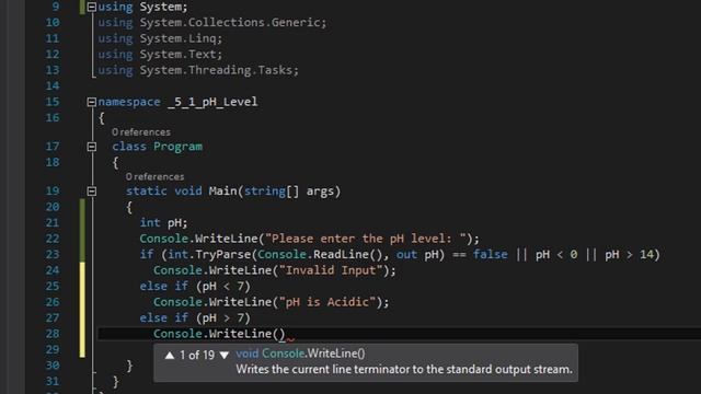 C# Learn to Program - Determining pH level of an acquarium (C# Conditional Statements)