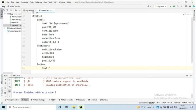Python@kivy lable with widget