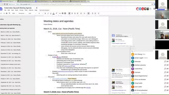 Kubernetes SIG Auth 20180321