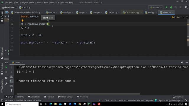 python random integer Shortridge HS