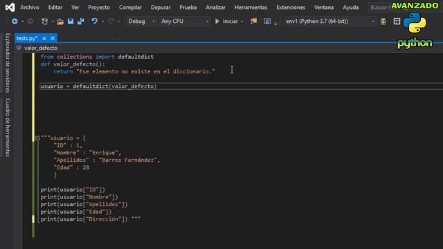 DICCIONARIOS por defecto - EXCEPCIONES CONTROLADAS - Python avanzado capítulo 6
