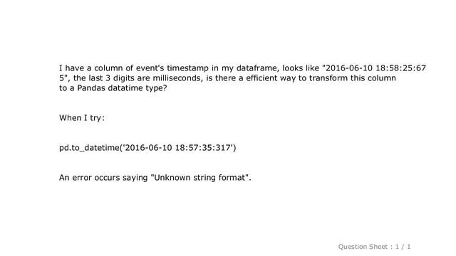 Pandas : In Pandas, how to convert a string to a datetime object with milliseconds?