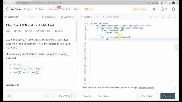 1346. Check If N and Its Double Exist | LeetCode Solution Series | Python3