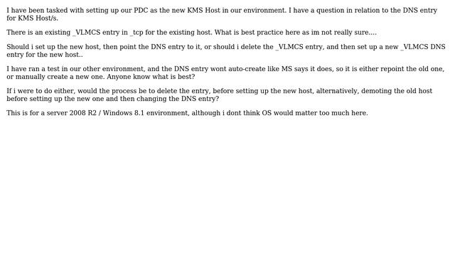 Setting up new KMS Host - what is best practice for _VLMCS DNS entry?