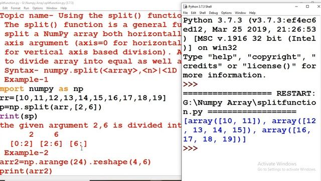 splitting ndarrays by using split()