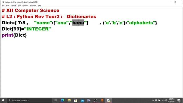 XII COMPUTER SCIENCE PYTHON TOUR2- DICTIONARIES