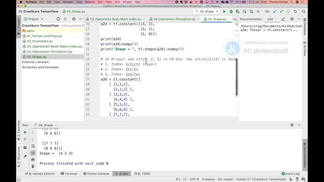 05 TensorFlow Crashkurs: Die Shape eines Tensors: tf.reshape, tf.slice
