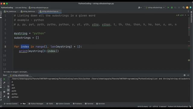 Python Code Challenge to list down all sub-strings of a String