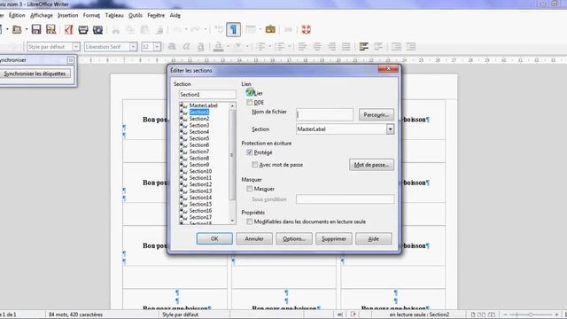 LibreOffice Writer : Synchronisation dans les étiquettes