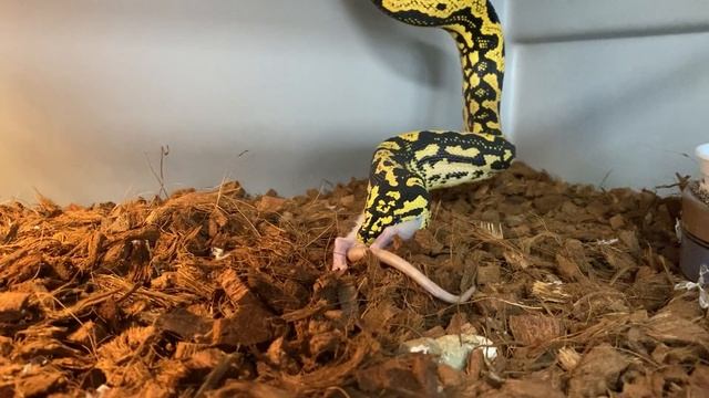 Le repas d’un python tapis de Cheyne (Morelia spilota cheynei)