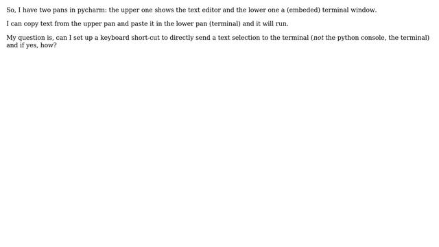 Ubuntu: Pycharm: run selection in \*terminal\* (not python consol)