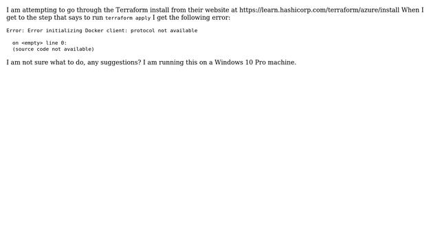 DevOps & SysAdmins: Terraform Error: Error initializing Docker client: protocol not available