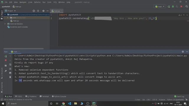 Python Amazing Library: Pywhatkit ] Mini Project