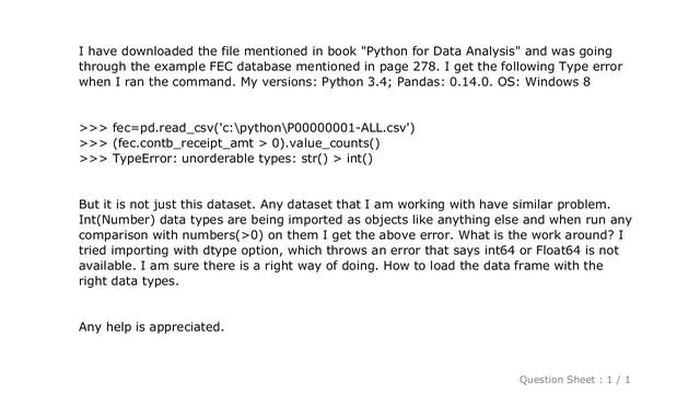 Pandas : Python Pandas DataFrame: unorderable types: str() int()