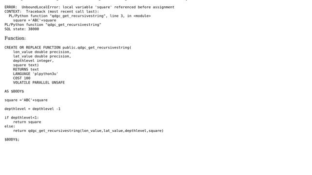 Databases: Variable problems in PostgreSQL with language plpython3u