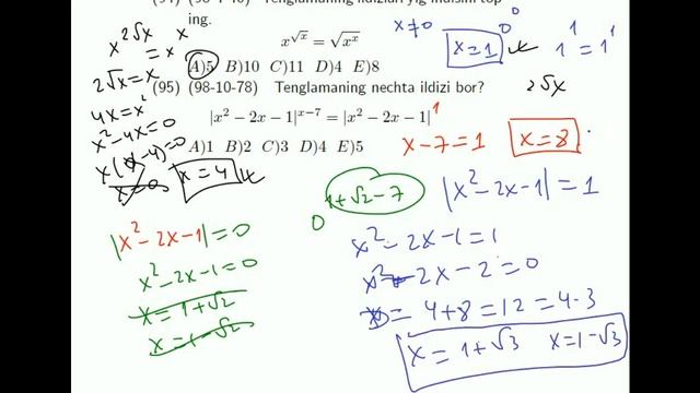 AXBOROTNOMA. KO'RSATKICHLI TENGLAMA. D, E QISM. 93-100 TESTLAR YECHIMI.
