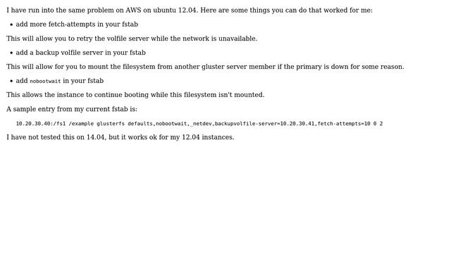 DevOps & SysAdmins: GlusterFS failing to mount at boot with Ubuntu 14.04 (6 Solutions!!)