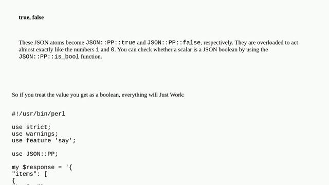 How to decode a json response in perl that contains pure perl boolean?