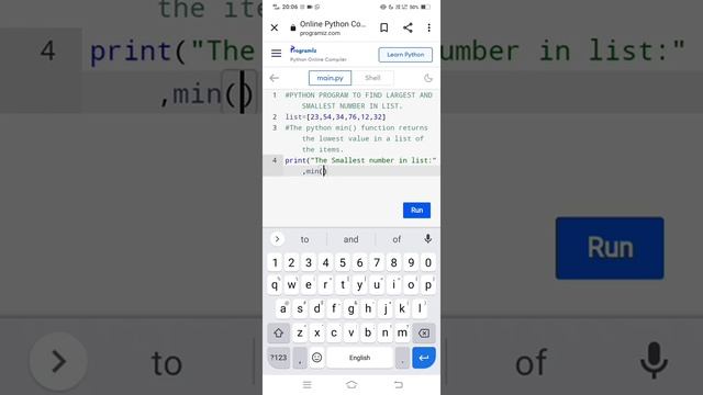 PYTHON PROGRAM TO FIND LARGEST AND SMALLEST NUMBER IN LIST.|#pythonprogram #min()&max()_function