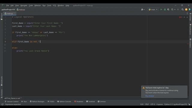 Python Class 3 - Logical Operators We Make One Grand Match in Python.