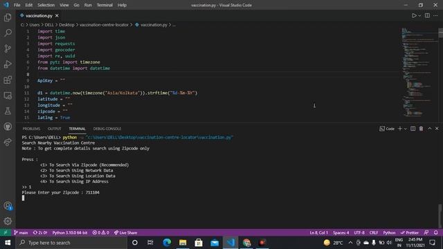 Python Project: Vaccination Center Locator