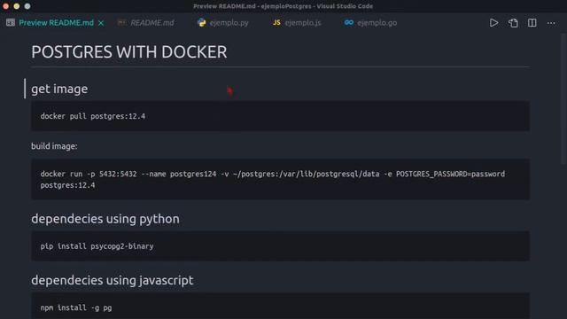 postgres con docker y ejemplos con python, javascript y golang very easy