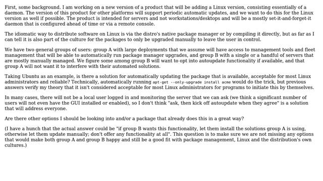 Unix & Linux: How do I provide autoupdate functionality for my package in an idiomatic way?