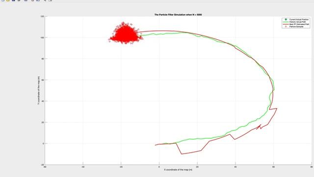 2D Particle Filter of A Point Robot with Initial Uniform Distribution of Particles