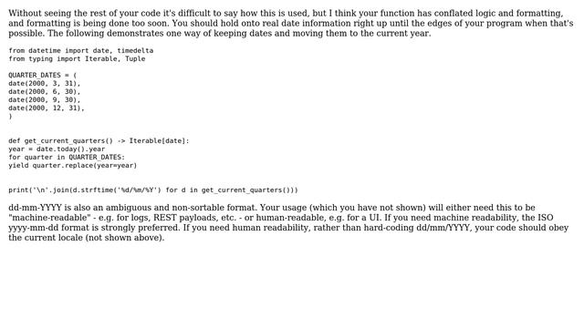 Code Review: Return quarters of current year (2 Solutions!!)