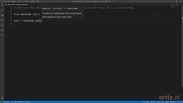 Python - Ejercicio 661: Obtener la Hora Actual por medio de la Función time() de la Clase datetime