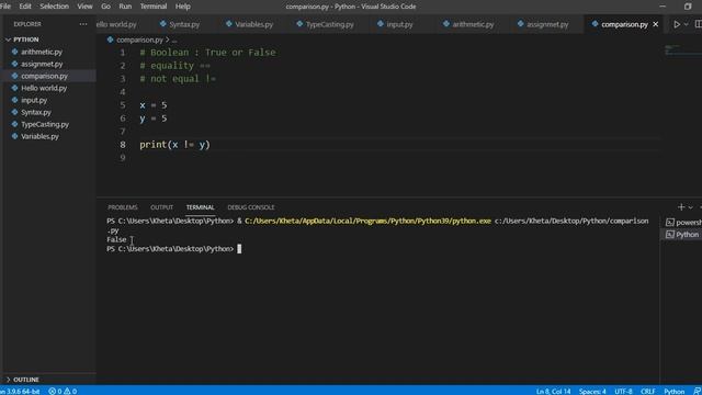 Comparison Operators | Python For Beginners | Khetz Tutorials