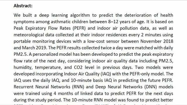Forecasting the Effects of Real Time Indoor PM2 5 on Peak Expiratory Flow Rates PEFR of Asthmatic