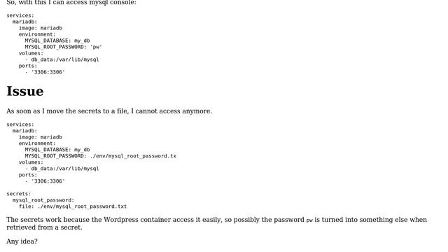 DevOps & SysAdmins: How to access mysql console on Docker container using secrets?
