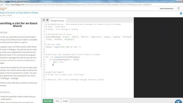 COP1000 Searching an Array for an Exact Match in Python