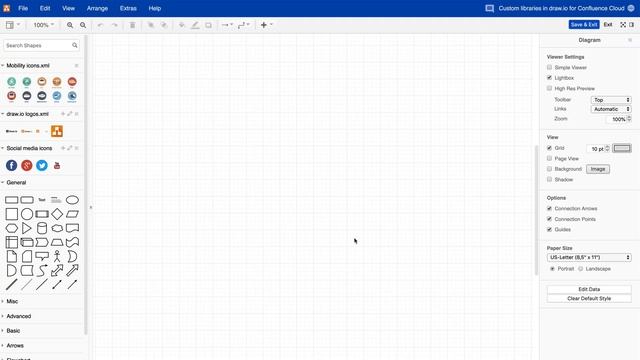 Use custom shape libraries and the scratchpad in draw.io for Atlassian Confluence (Cloud)
