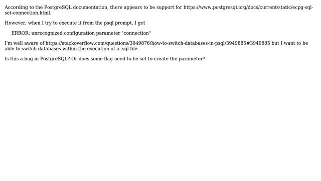 SET CONNECTION in PostgreSQL gives "unrecognized configuration parameter"