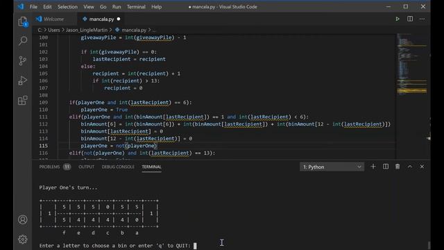 Lesson 8 - Python Command Line Game - Mancala