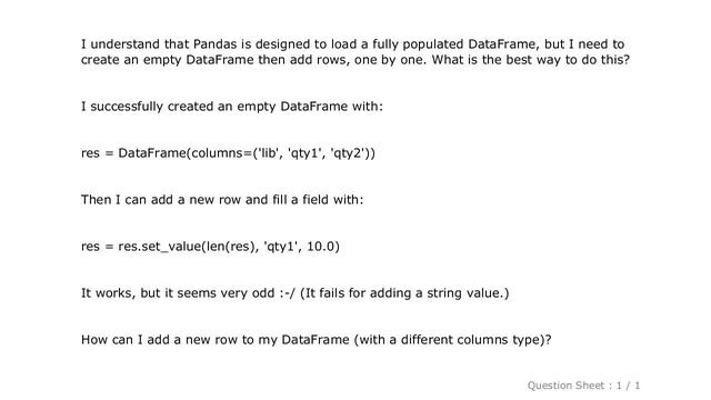 Pandas : Create a Pandas Dataframe by appending one row at a time