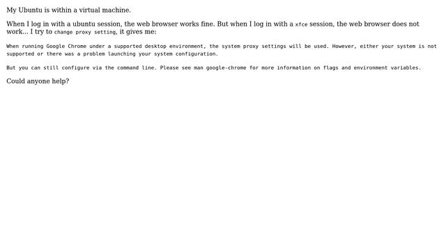 Proxy setting under xfce within virtual machine