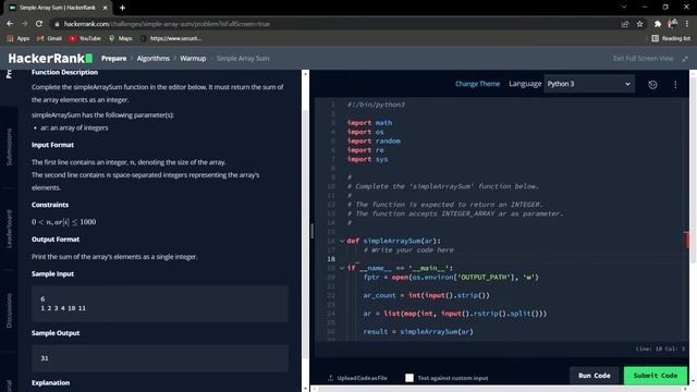 HackerRank | Simple Array Sum Solution in Python
