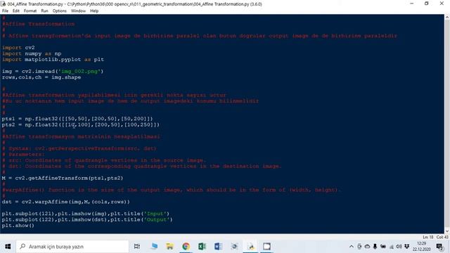 OPENCV Python Ders 22: Geometrik transformasyonlar 4: Affine Transformasyonu