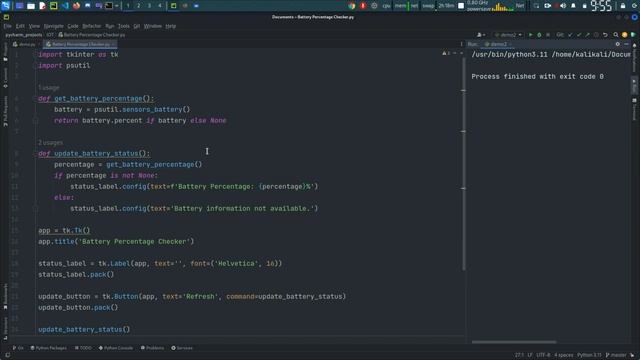 Python Battery Percentage Monitor GUI Application