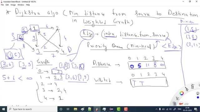 Graph -18: Dijkstra Algorithm (Min distance b/w source to destination in Weighted Graph)